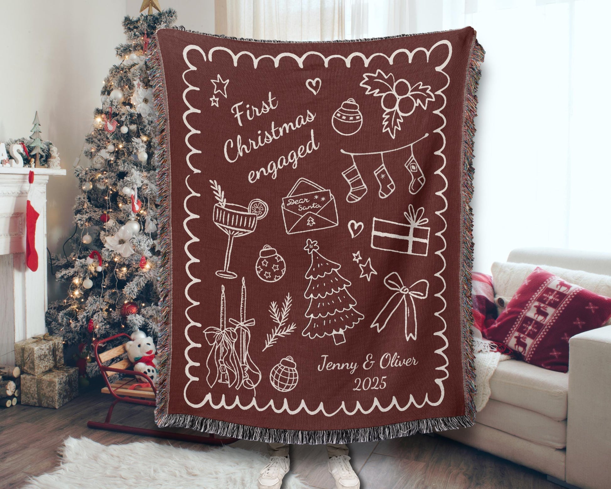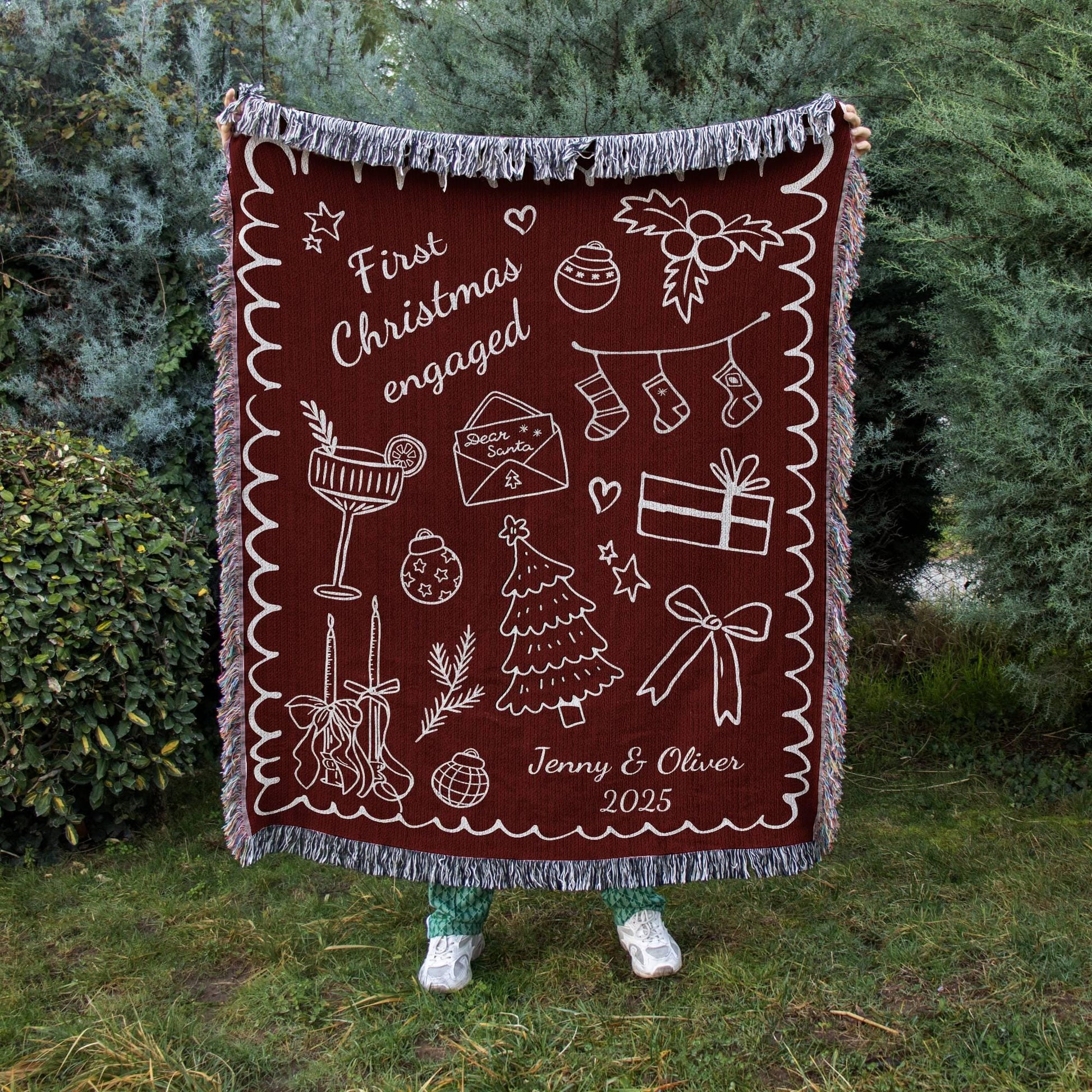Red First Christmas Engaged Woven Blanket