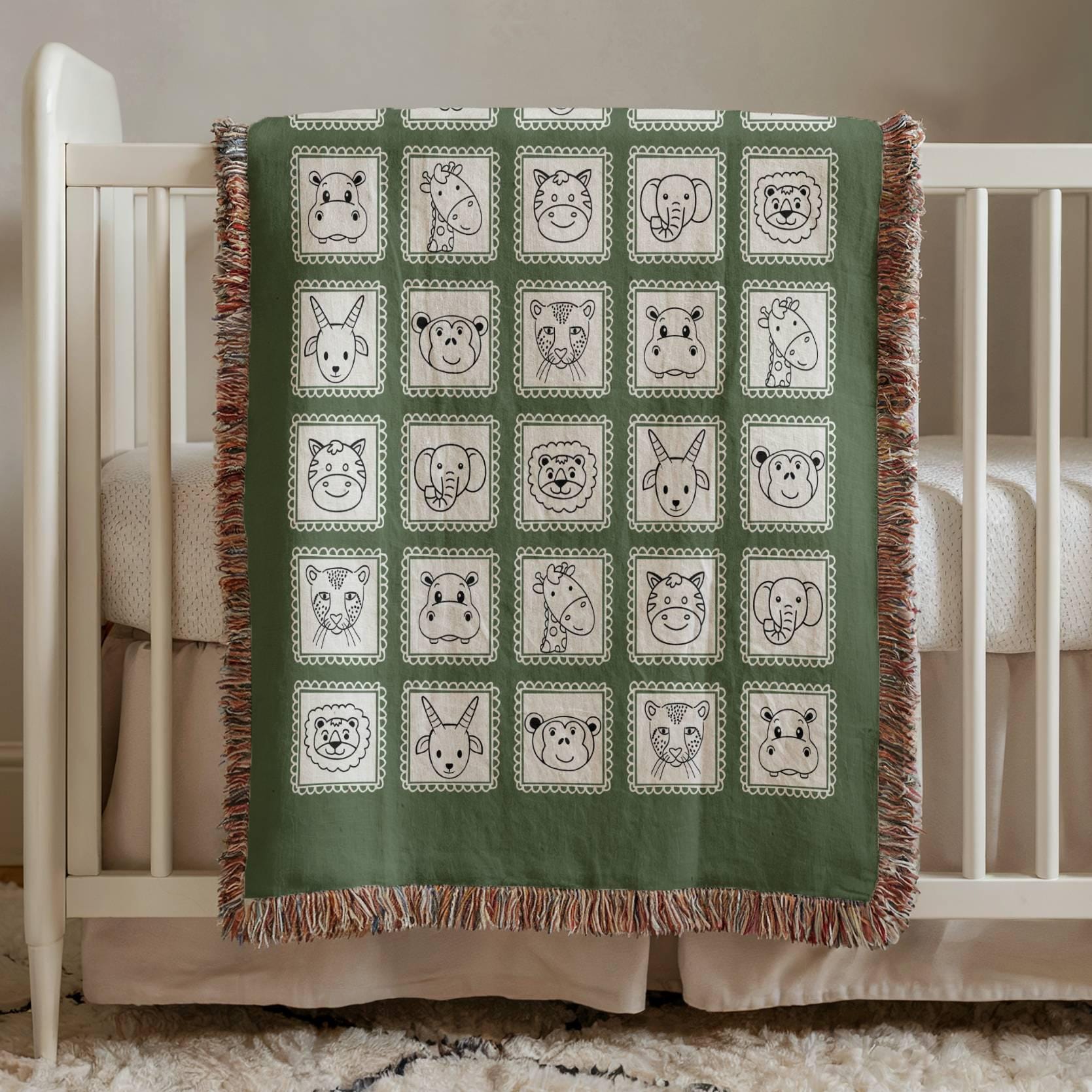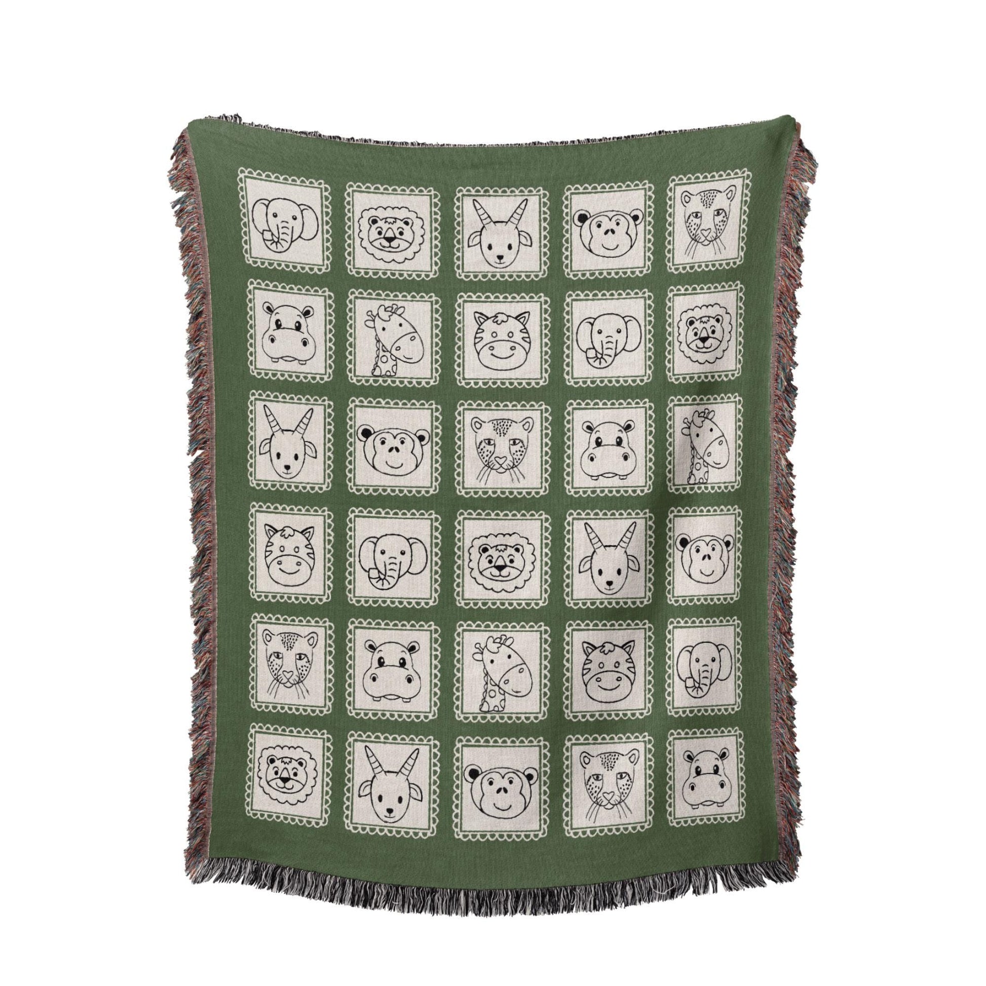 Green Safari Animals Woven Blanket
